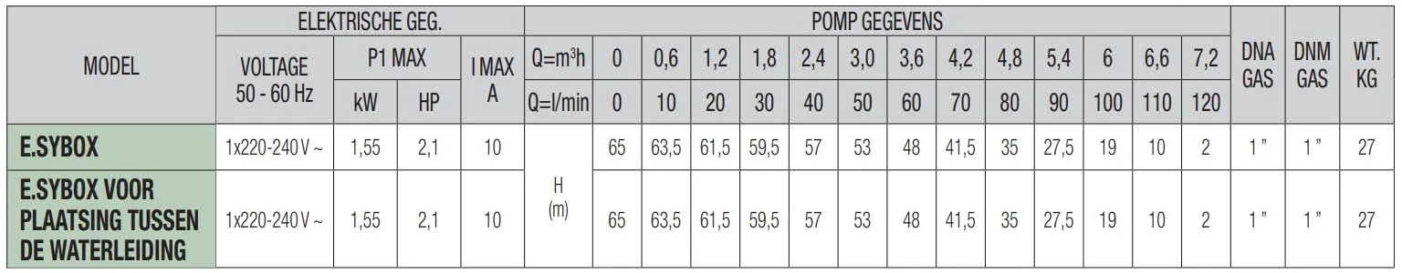 Deze pomp is ook in te stellen als een een zelfaanzuigende pomp. Hij heeft de capaciteit om maximaal 8 meter diep vanuit het water uit uw waterbron, breektank of regenwaterreservoir op te zuigen en dan tot de door u gewenste druk te verhogen. De druk van deze pomp is volledig regelbaar en kunt per 0,1 bar verhogen of verlagen. Of het nou gaat om de waterdruk verhogen van uw kantoor, woning of appartement: De DAB e.sybox hydrofoorpomp is uw alles-in-één-oplossing!