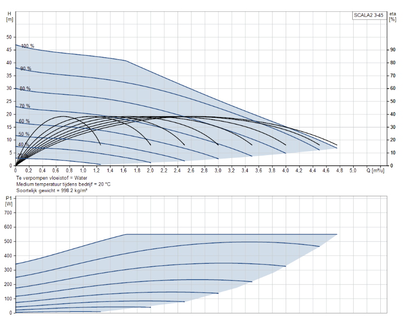 De Grundfos SCALA2 is een compacte hydrofoorpomp met intelligente besturing. Deze alles-in-één boosterpomp levert op ieder moment de perfecte waterdruk. Dankzij de watergekoelde motor is de pomp ook nog eens zeer geluidsarm. De pomp beschikt over een voordrukbeveiliging, zodat er bij het wegvallen van de waterdruk geen water meer aangezogen kan worden. Dit is tevens verplicht voor het gebruik op het waterleidingnet. De combinatie van een zeer compacte pomp met een geluidsproductie van slechts 44 db (A) maakt de SCALA 2 de ideale keuze voor huishoudelijk gebruik.